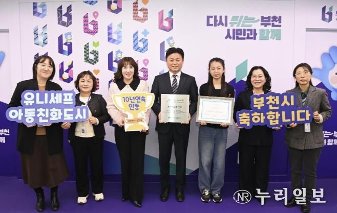 (누리일보) 부천시는 유니세프 한국위원회로부터 ‘유니세프 아동친화도시’ 인증을 갱신했다고 14일 밝혔다. 이번 인증은 2019년 12월 최초 인증에 이어 자격을 유지한 것으로, 유효기간은 2029년 12월 30일까지다.
