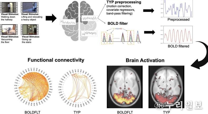 휴지기 fMRI에서 신뢰도 높은 BOLD(blood oxygenation level-dependent) 신호만 추출하던 BOLD-filter 기법을 과제기반 fMRI 전처리에 적용, 유의미한 BOLD 신호를 강조하고 잡음을 줄였다.
