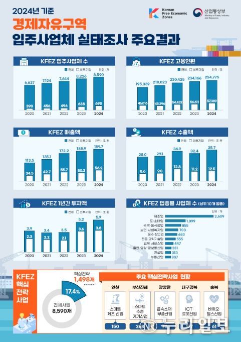 (누리일보) '2024년 기준 경제자유구역 입주사업체 실태조사'에 따르면 경제자유구역이 외국인투자기업 증가와 고용·투자 등이 크게 확대되며 지역경제의 핵심 성장거점으로서의 역할을 톡톡히 하는 것으로 나타났다.