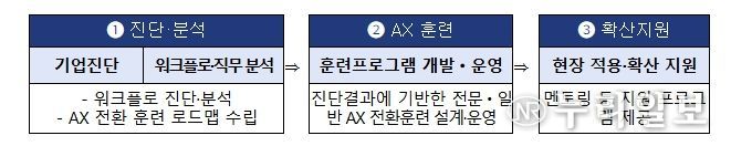① 1단계(진단·분석): 전문가가 기업 현장을 방문해 AI도입 준비 수준을 진단하고, 업무 프로세스별 병목 구간을 파악해 ‘AI 훈련 로드맵’을 수립한다.