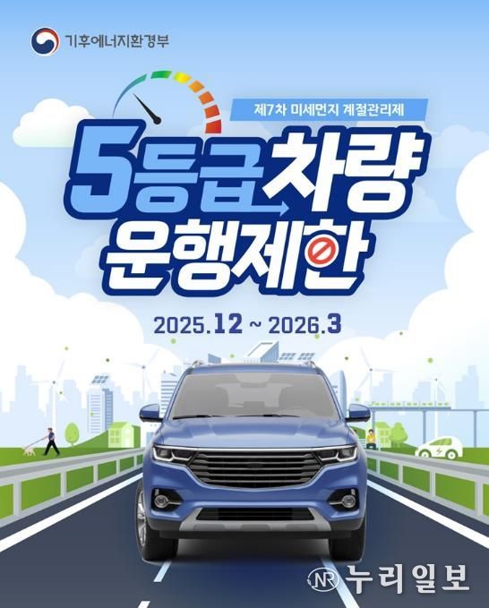 (누리일보) 파주시는 제7차 계절관리제 기간인 2025년 12월부터 2026년 3월까지 배출가스 5등급 차량에 대한 단속을 실시하고 있다.