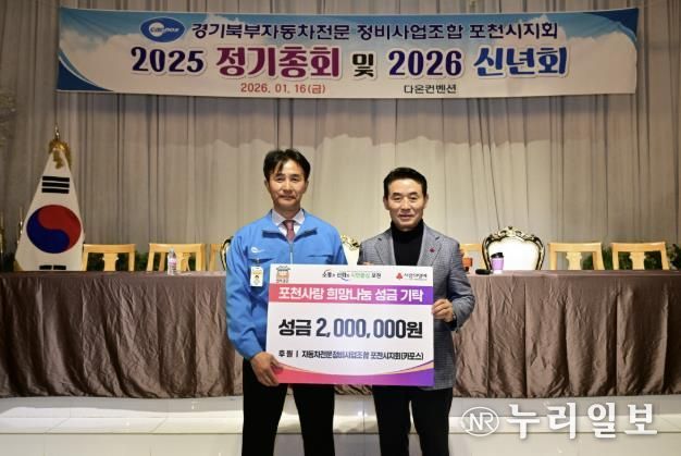 (누리일보) 포천시는 지난 16일 경기북부자동차전문정비사업조합(카포스) 포천시지회가 지역 내 취약계층 지원을 위해 성금 200만 원을 기탁했다고 밝혔다.