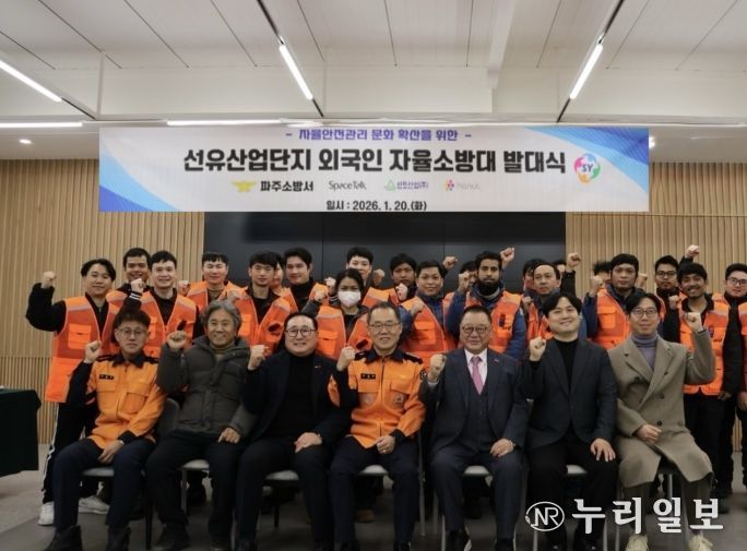 (누리일보) 파주소방서는 1월 20일 오후 4시, 파주시 문산읍 선유산업단지 내 스페이스톡에서 외국인 근로자 자율소방대 발대식을 열었다. 이번 행사는 겨울철 화재위험이 높은 시기에 외국인 고용사업장의 자율안전관리 역량을 높이기 위한 취지로 마련됐다.