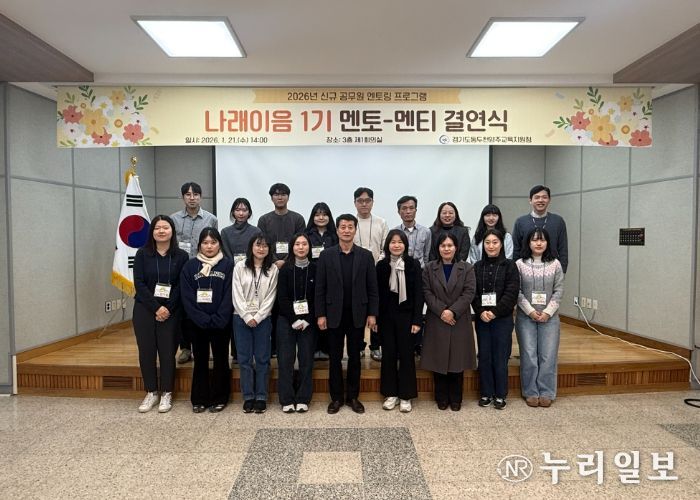 (누리일보) 동두천양주교육지원청은 신규공무원의 조기 공직 적응을 지원하기 위해 1월 21일, 동두천양주교육지원청에서 ‘나래이음 1기 결연식’을 개최한다. ‘나래이음’은 동두천양주 신규공무원 대상 교육프로그램 중 멘토링 프로그램의 명칭으로, 연간 멘토링을 통해 직무 역량과 정서적 안정을 함께 지원하고 선후배 간 소통과 공감을 기반으로 한 조직문화 조성을 목적으로 운영된다.