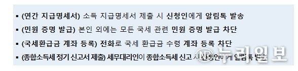 이 밖에도 명의도용으로 인한 피해가 예상되는 국세행정 업무에 대해 다음과 같은 서비스를 시행한다.