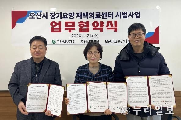 (누리일보) 오산시 보건소는 지난 21일 오산시민의원, 세교중앙내과의원과 함께 ‘장기요양 재택의료센터 시범사업’의 원활한 운영을 위한 업무협약을 체결했다고 밝혔다.