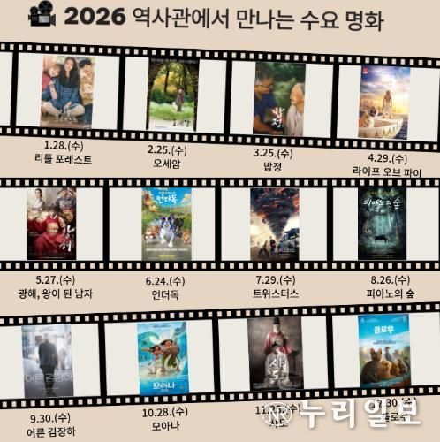 (누리일보) 부산광역시립중앙도서관 분관 부산교육역사관은 오는 28일부터 12월까지 매월 마지막 수요일 오후 2시부터 역사관 영상실에서 학생과 지역 주민들을 대상으로 ‘역사관에서 만나는 수요 명화’를 운영한다.