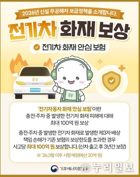충전·주차 중 발생한 전기차 화재 피해에 대해 최대 100억 원 보상