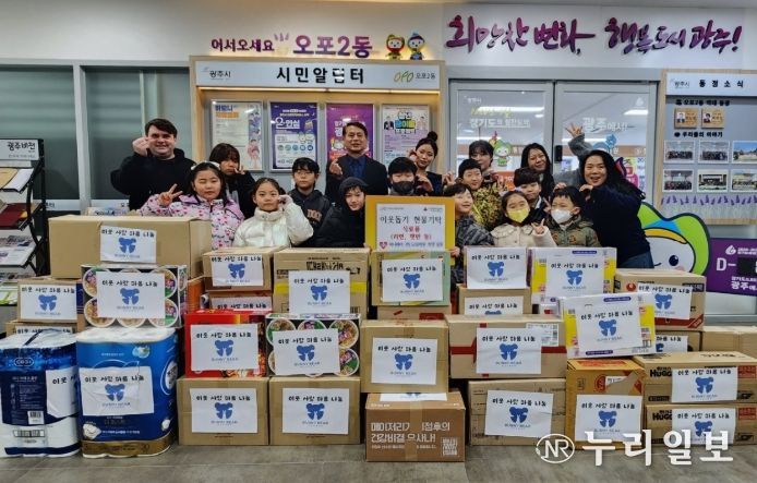 (누리일보) 광주시 양벌동에 위치한 버니베어 전인교육학원 학생들은 27일 오포2동 행정복지센터를 방문해 주변의 어려운 이웃을 위한 식료품을 전달했다.