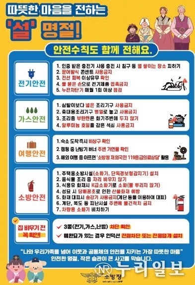 이번 대책은 명절 기간 화재 위험 요인을 사전에 차단하고, 생활 속 안전문화 정착에 중점을 두고 추진된다.