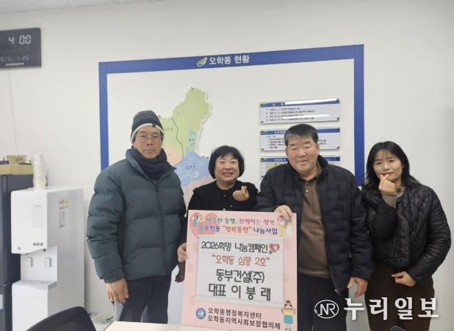 (누리일보) 동부건설(주)은 지역사회 이웃사랑 실천을 위해 지난 26일 오학동행정복지센터에 현금 100만 원을 기탁했다.