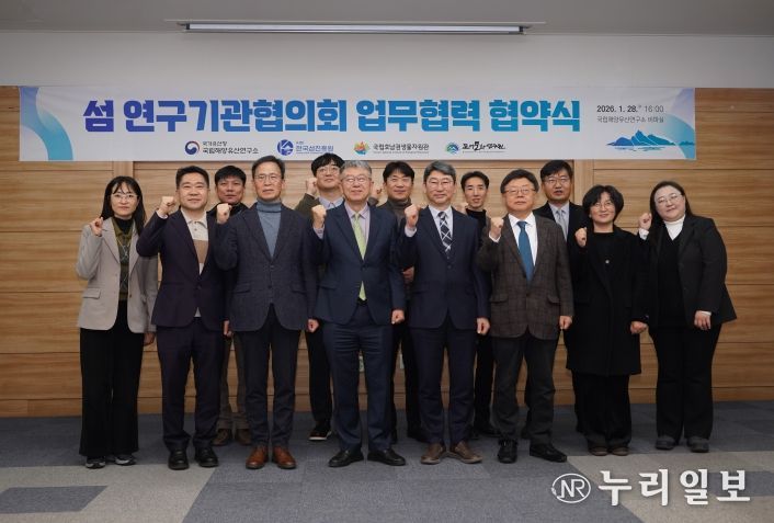 (누리일보) 국가유산청 국립해양유산연구소(소장 이은석)는 한국섬진흥원(원장 조성환), 국립호남권생물자원관(관장 박진영), 국립목포대학교 도서문화연구원(원장 홍석준)과 1월 28일 오후 4시 국립해양유산연구소 회의실(전남 목포시)에서 섬을 주제로 한 연구 협력과 정보 공유를 위한 ‘섬 연구기관협의회’ 업무협력 협약을 체결했다.