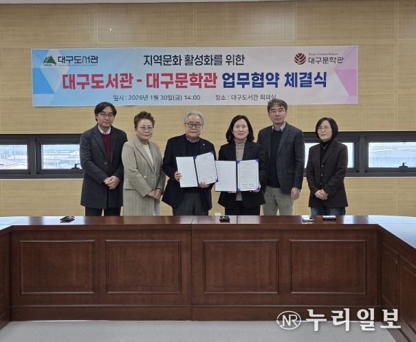 (누리일보) 대구도서관과 대구문학관은 시민을 위한 독서문화 분야 협력을 강화하고 상호 발전을 도모하기 위해 1월 30일 오후 2시, 대구도서관 회의실에서 업무협약을 체결했다.