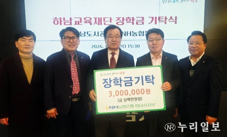 (누리일보) NH농협은행 하남시지부는 하남시 지역인재 양성을 위해 하남교육재단에 장학금 3백만원을 기탁했다.