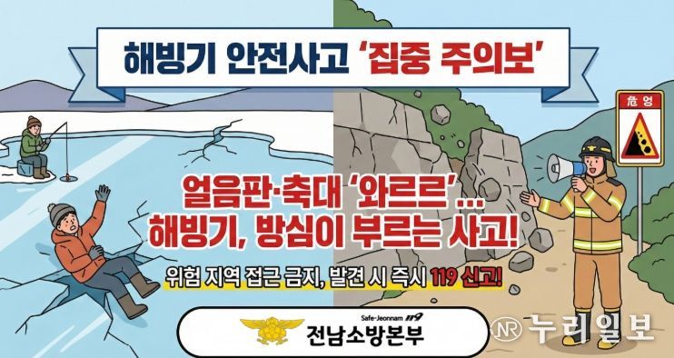 (누리일보) 전남소방본부는 입춘(4일)을 맞아 겨울철 얼었던 지반이 녹아내리는 '해빙기' 안전사고 발생 위험이 높아짐에 따라 도민들의 각별한 주의를 당부했다.