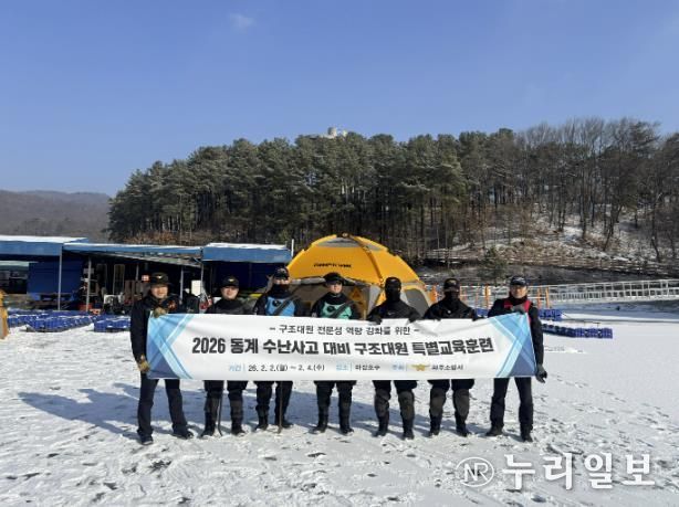 (누리일보) 파주소방서는 2월 2일부터 4일까지 3일간 마장호수 일원에서 겨울철 수난사고에 대비한 ‘동계 수난구조 특별교육훈련’을 실시했다. 이번 훈련은 혹한기 수난 현장의 특수성과 위험성을 고려해 구조대원의 신속한 대응과 구조 전문성 강화를 목표로 진행됐다.