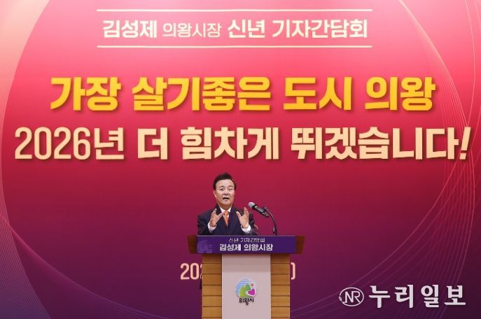 (누리일보) 김성제 의왕시장이 5일 시청 대회의실에서 2026년 신년 기자간담회를 열고 민선8기 의왕시 주요성과와 2026년 시정 운영방향에 대해 설명하는 시간을 가졌다.