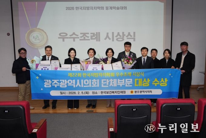 (누리일보) 광주광역시의회는 5일 청주시 한국보건복지인재원에서 열린 제22회 한국지방자치학회 주관 우수조례 시상식에서 단체 부문 대상을 비롯해 개인·공무원 부문에서도 우수상 등을 수상했다.