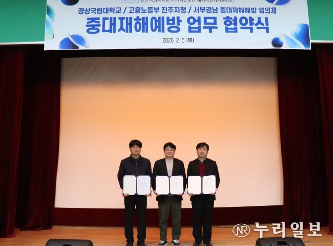 (누리일보) 경상국립대학교 라이즈(RISE) 사업단은 2월 5일 사천시 근로자종합복지관에서 서부경남 중대재해 예방 협의체 및 고용노동부 진주지청과 업무협약을 체결했다.