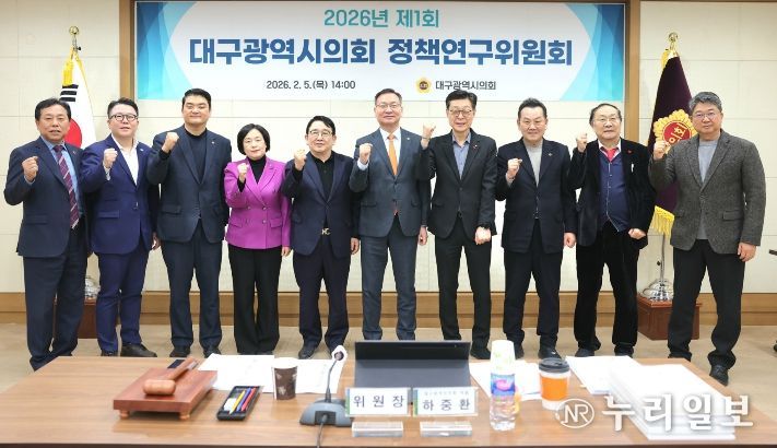 (누리일보) 대구광역시의회는 2월 5일 오후 2시, 시의회 3층 회의실에서 ‘2026년 제1회 대구광역시의회 정책연구위원회’를 개최해, 2025년에 완료된 의원 정책연구의 추진 과정과 내용에 대한 적절성 등을 중점 점검하고, 2026년 상반기의 연구과제로 ‘대구·경북 의회통합 방안 연구’를 심의·의결했다.