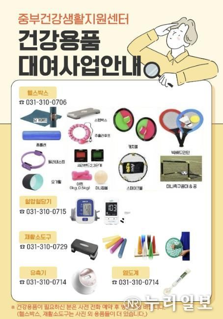 (누리일보) 시흥시 중부건강생활지원센터는 시민의 건강생활 실천을 돕기 위해 헬스박스, 혈압ㆍ혈당, 염도계, 재활 소도구, 유축기 등 다양한 건강용품 대여 사업을 운영하고 있다.