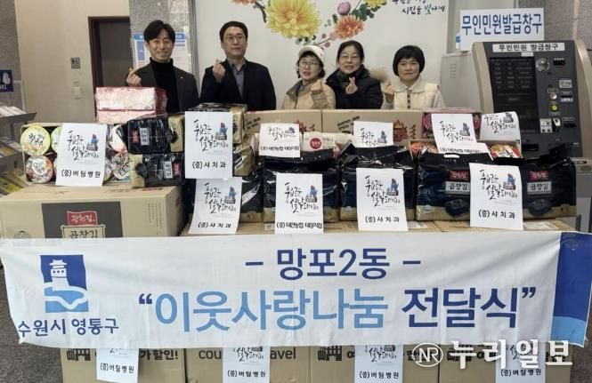 버팀병원은 진료 활동과 더불어 망포2동 지역사회보장협의체 위원으로 활동하며 지속적인 사회공헌과 나눔 실천에 앞장서고 있다. 이번 전달식에는 태안농협 태장지점(지점장 위종욱)과 서울샤치과도 함께 참여해 햇반과 컵라면 10박스, 곱창김 25봉을 후원하며 나눔의 의미를 더했다.
