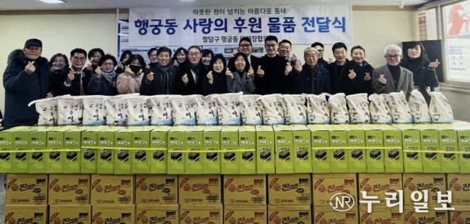 (누리일보) 수원시 팔달구 행궁동은 지난 6일 설 명절을 맞아 ‘행궁동 사랑의 후원 물품 전달식’을 개최했다. 이번 전달식에는 설 명절을 앞두고 행궁동 취약계층을 위해 후원 물품을 기부한 행궁동 주민자치회를 비롯한 단체장들과 후원자들이 참석해 이웃 나눔의 의미를 함께 했다.