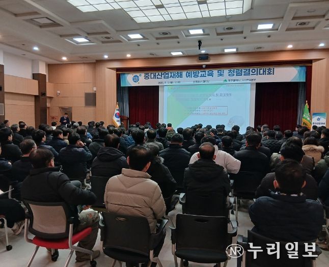 (누리일보) 대구광역시 도시건설본부는 공사 현장의 중대산업재해 예방과 안전문화 확산을 위해 2월 9일(월) 오전 10시 산격청사 대강당에서 ‘중대산업재해 예방교육 및 현장 관계자 청렴교육’을 실시했다.