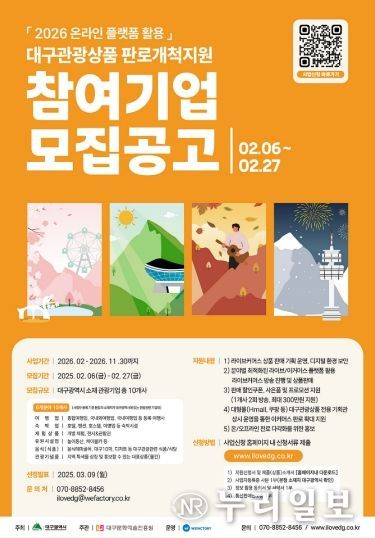 (누리일보) 대구광역시와 대구문화예술진흥원 관광본부는 지역 관광사업체의 경쟁력 강화를 위해 ‘2026년 온라인 플랫폼 활용 대구 관광상품 판로개척 지원사업’을 추진한다.