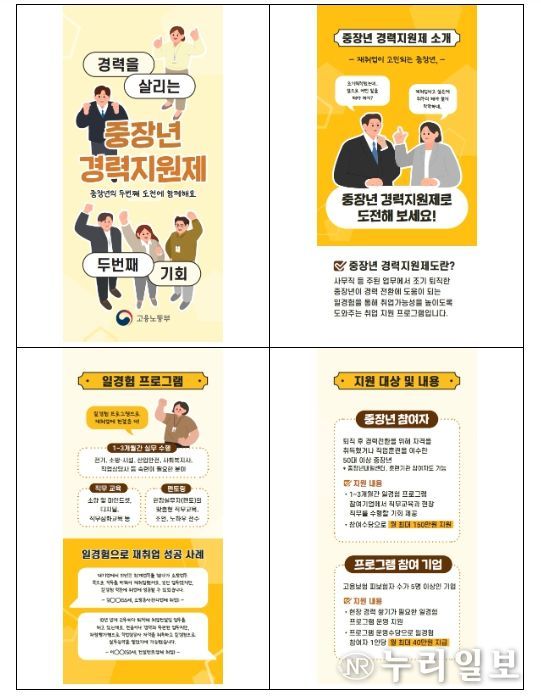 (누리일보) 고용노동부는 퇴직 이후 새로운 분야로 재취업을 준비하는 중장년을 대상으로, 실제 직무 경험을 통한 경력 전환을 지원하는 “중장년 경력지원제”를 시행한다.