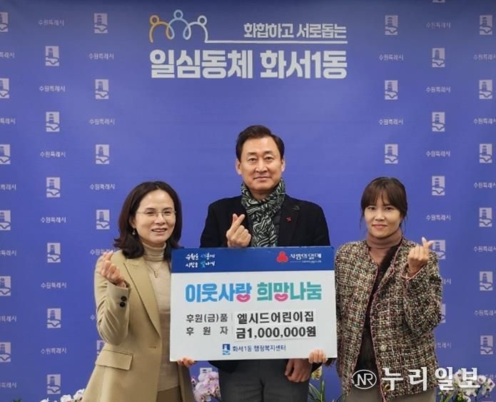 (누리일보) 수원시 팔달구 화서1동은 지난 9일, 관내 엘시드어린이집이 지역 내 어려운 이웃을 돕기 위해 화서1동 행정복지센터에 현금 100만 원을 후원했다고 밝혔다.