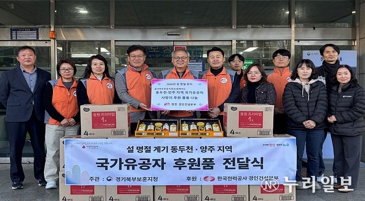 (누리일보) 경기북부보훈지청은 지난 2월 9일, 한국전력공사 경인건설본부와 함께 경기도 동두천·양주시에 거주하는 국가유공자 등 보훈가족 300여 명에게 설 명절 후원품을 전달하고 위문했다고 밝혔다.