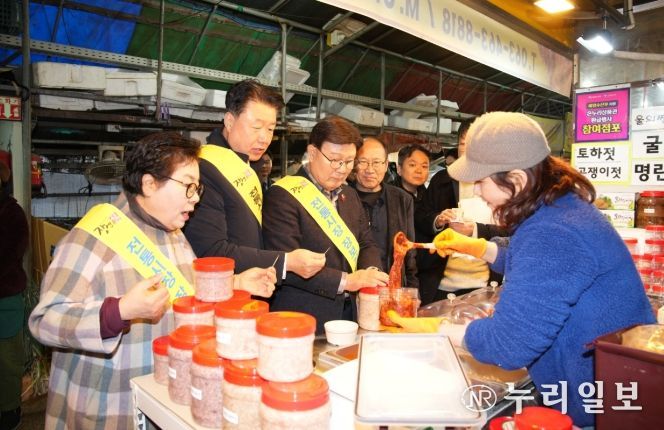 (누리일보) 전북특별자치도의회는 설 명절을 앞둔 10일 군산 주공시장을 방문해 전통시장 상인들을 응원하며, 시장 활성화를 위한 장보기 행사와 이용 캠페인을 진행했다.