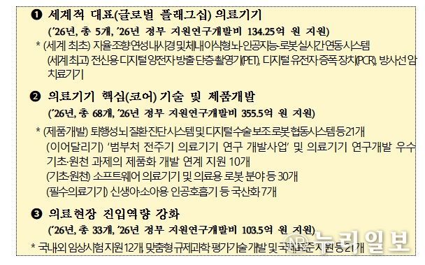 (누리일보) 과학기술정보통신부, 산업통상부, 보건복지부, 식품의약품안전처는 2026년 1차 연도 신규 과제 공고와 사업설명회 개최를 통해 ‘범부처 첨단 의료기기 연구개발 사업’을 본격 추진한다고 밝혔다.