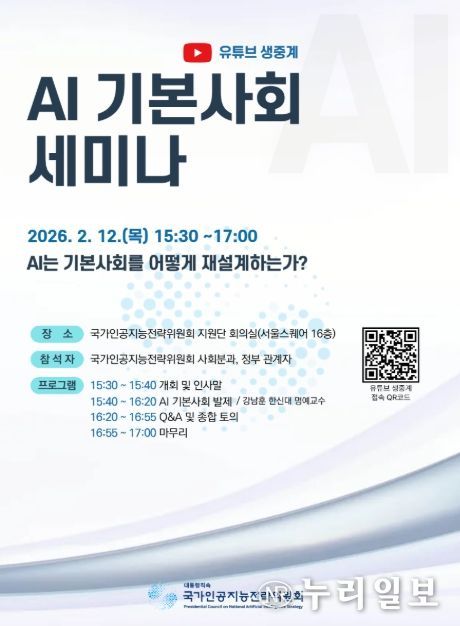 (누리일보) 국가인공지능전략위원회는 2월 12일 오후 3시 30분부터 AI 기본사회 세미나를 개최한다. 이번 세미나는 AI 기술 확산이 노동ㆍ복지ㆍ분배ㆍ사회안전망 등 경제ㆍ사회 정책 전반에 미치는 영향을 종합적으로 살펴보고, AI 시대에 부합하는 기본사회 제도 설계 방향에 대한 시사점을 도출하기 위해 마련됐다. 특히 AI 기술의 확산에 따라 부와 생산수단이 특정 주체에 집중됨과 동시에 고용ㆍ소득 양극화를 포함한 구조적 변화가 예상되는 상황에서, 기본사회 정책이 어떤 역할과 방향성을 갖고 추진되어야 하는지에 대한 심도 있는 논의가 진행될 예정이다.