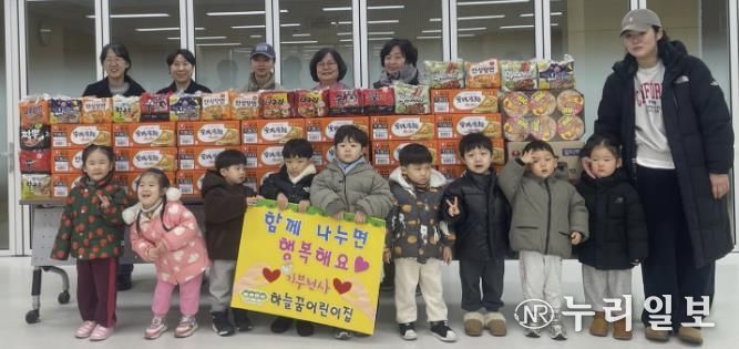 (누리일보) 하늘꿈어린이집은 지난 11일, 지역 내 어려운 이웃을 돕기 위해 라면 30박스를 매산동 행정복지센터에 기부했다.