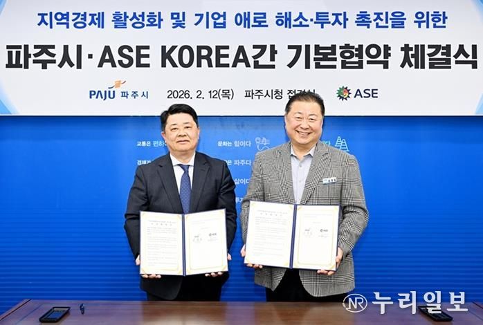 (누리일보) 파주시는 기업 애로사항을 해소하고 지역 경제를 활성화하기 위해 문발2 산업단지 입주 기업인 에이에스이 코리아(ASE Korea)와 ‘폐수 연계 처리 협약’을 체결했다.