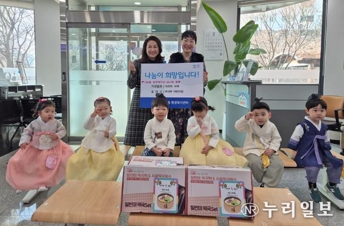 (누리일보) 수원시 장안구 조원2동에 위치한 토마토 어린이집은 지난 12일, 설 명절을 맞아 원생들과 함께 조원2동 행정복지센터에 떡국떡 10팩을 전달했다.