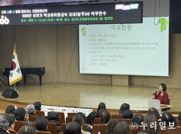 (누리일보) 경기도고양교육지원청은 오는 2월 13일, 2월 20일 이틀간 관내 공립유·초·중·고·특수·각종학교 189교 조리(실무)사와 영양(교)사를 대상으로 2026년 상반기 학교·유치원급식 담당자 직무연수를 실시한다고 밝혔다.