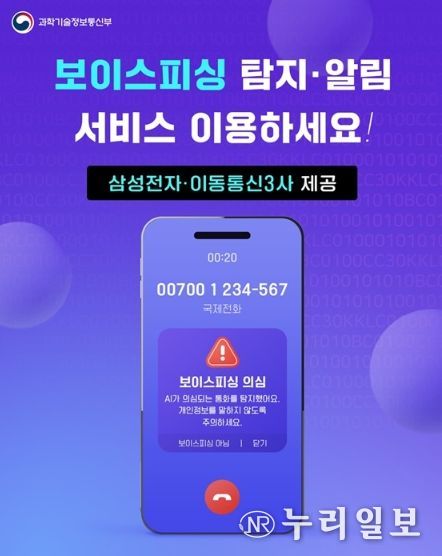 국민들의 보이스피싱 피해 방지를 위해 삼성전자와 이동통신 3사가 제공하는 인공지능 기반 보이스피싱 탐지·알림 서비스를 이용해 주시기 바랍니다.