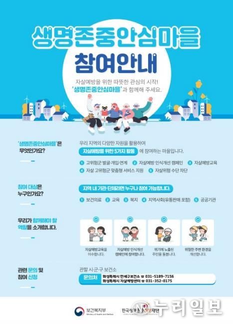 (누리일보) 화성특례시가 자살 예방과 정신건강 증진을 위해 ‘생명존중 안심마을’을 확대 운영하고 사업에 함께할 지역사회 기관·단체를 모집한다고 밝혔다.