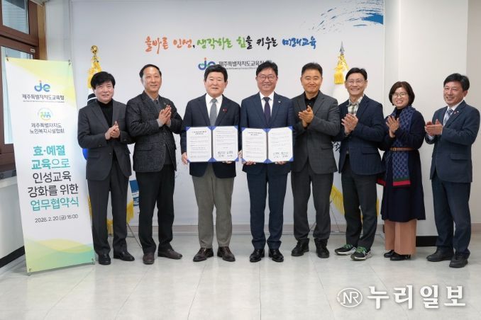 (누리일보) 제주특별자치도교육청은 20일 제주특별자치도노인복지시설협회와 ‘효·예절 교육으로 인성교육 강화를 위한 업무협약’을 체결했다.