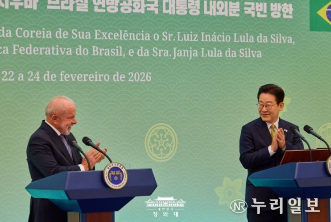 (누리일보) 이재명 대통령과 루이스 이나시우 룰라 다시우바 브라질 대통령은 23일 정상회담을 갖고, 양국 관계를 '전략적 동반자 관계'로 격상시키기로 하고, 이를 이행하기 위한 '한-브라질 4개년 행동계획'을 채택했다.