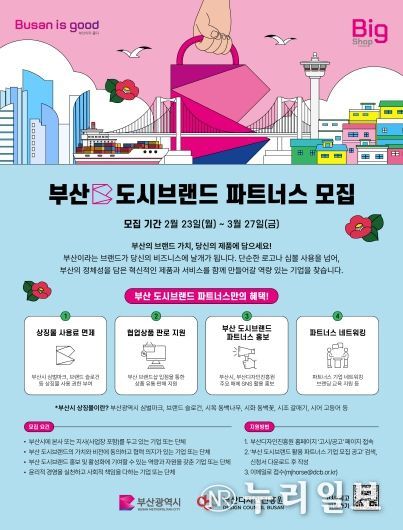 (누리일보) 부산시와 (재)부산디자인진흥원은 23일부터 3월 27일까지 부산 도시브랜드를 활용한 상품과 콘텐츠를 함께 만들어갈 '2026 부산 도시브랜드 파트너스' 참여기업을 모집한다고 밝혔다.