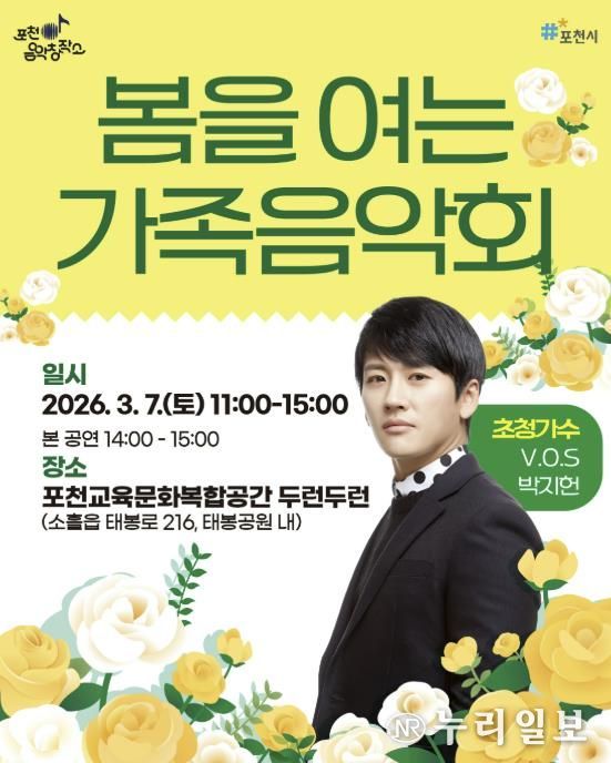 (누리일보) 포천시는 오는 3월 7일 포천시 교육문화복합공간 두런두런에서 ‘포천음악창작소, 봄을 여는 가족음악회’를 개최한다.