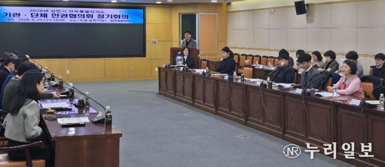 (누리일보) 전북특별자치도는 25일 전북검찰청, 전북교육청, 전북경찰청, 고용노동부, 전북여성인권지원센터 등 14개 기관과 함께 '2026년 전북특별자치도 기관·단체 인권협의회' 정기회의를 열고, 기관별 인권 정책을 공유하며 협력 강화 방안을 논의했다.