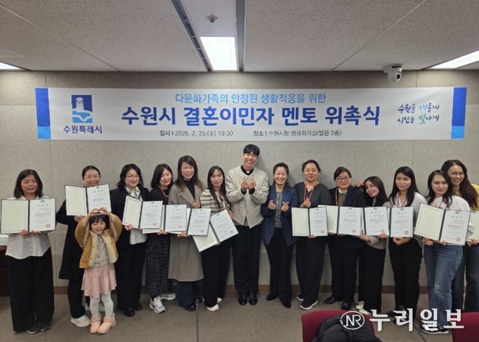 (누리일보) 수원특례시가 25일 시청 영상회의실에서 ‘2026년 결혼이민자 멘토 위촉식’을 열고 선배 이민자 멘토 15명을 위촉했다.