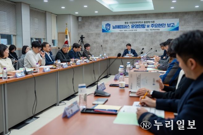 (누리일보) 경남도립남해대학(총장 노영식)은 24일 혁신학습지원실에서 국립창원대학교 통합 출범에 따른 남해캠퍼스 운영 현황 및 주요 현안 보고회를 개최했다.