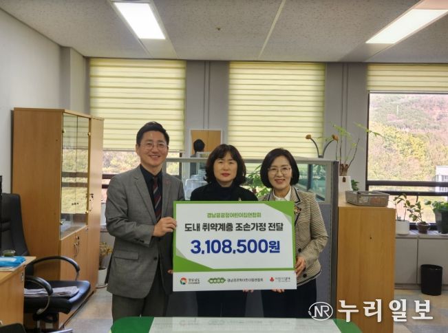 (누리일보) 경남도는 25일 경남공공형어린이집연합회(회장 위정숙)가 가정위탁 조손가정을 위해 성금 310만 8천500원을 기탁했다고 밝혔다.