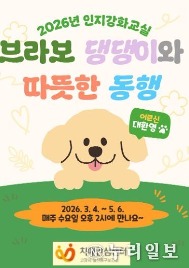 (누리일보) 고양특례시 일산동구보건소 치매안심센터는 중앙치매센터에서 개발한 ‘BRABO’ 인지훈련 프로그램과 동물교감치료를 적용한 ‘브라보 댕댕이와 따뜻한 동행’ 프로그램의 참가자를 모집한다고 26일 밝혔다.